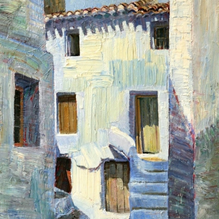 Behind the figures of Amalio, there is always a landscape of whitewashed houses from Andalusian villages or from cities such as Granada and Seville to balance and form the painting, as the great Renaissance painters did.